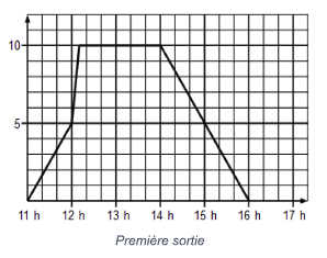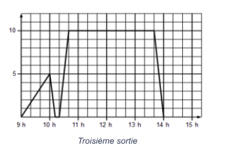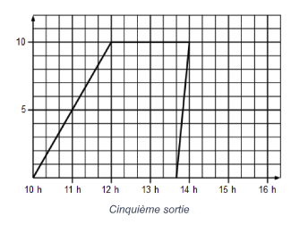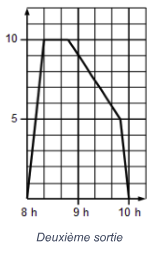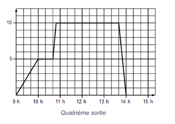 Sur son carnet personnel, le petit Chaperon Rouge raconte ses sorties en traçant un graphique. Sur l’axe horizontal il marque les heures, sur l’axe vertical, il marque la distance qui le sépare de sa maison. Raconte l’histoire correspondant à chaque graphique.