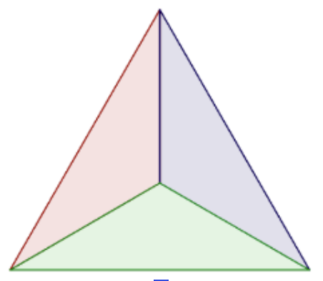 On dispose de triangles équilatéraux partagés en 3 zones de coloriage.